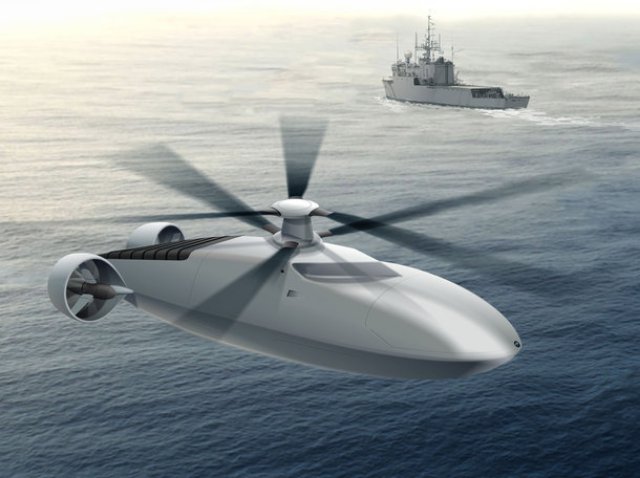 The two companies submitted their proposal in October in response to a Navy request for concepts for an unmanned, vertical-takeoff-and-landing surveillance aircraft that could operate from ships and cover long distances and stay in the air for long periods.